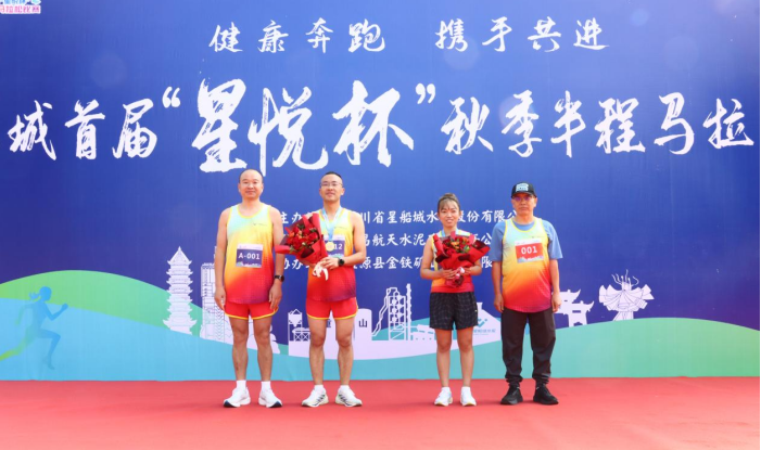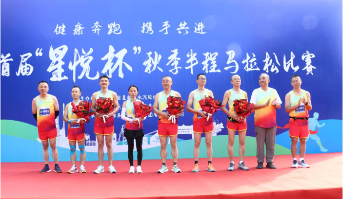 隨后,舉行隆重頒獎儀式,公司領導分別為前三名選手頒發獎牌和鮮花,全體參賽選手合影留念,星船城首屆“星悅杯”半程馬拉松比賽圓滿結束。